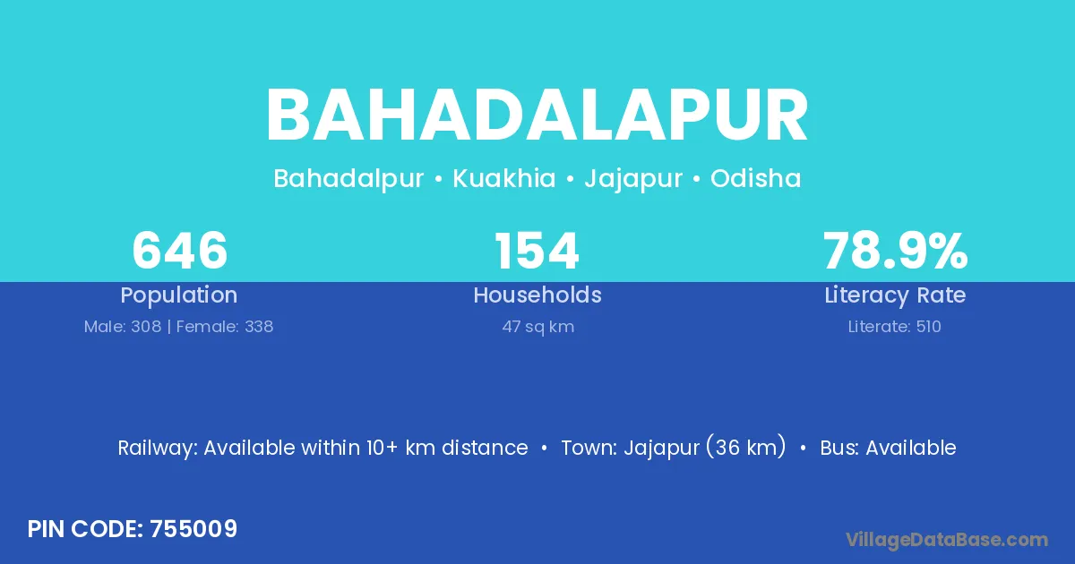 Jajapur (36 km) is the nearest town to Bahadalapur village for major economic activities and is located approximately 36 km away.
