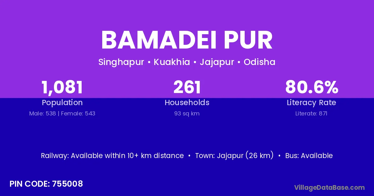 Bamadei Pur village is located in the Kuakhia Tehsil of the Jajapur district in Odisha .