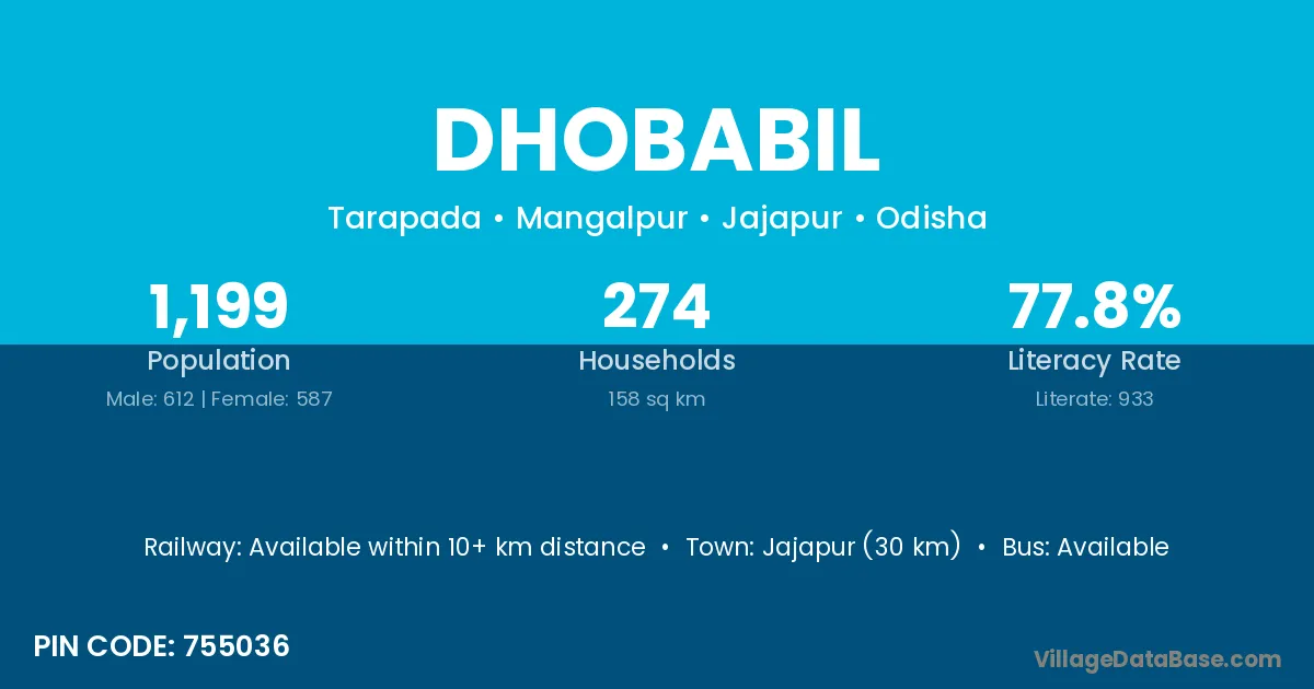 Jajapur (30 km) is the nearest town to Dhobabil village for major economic activities and is located approximately 30 km away.