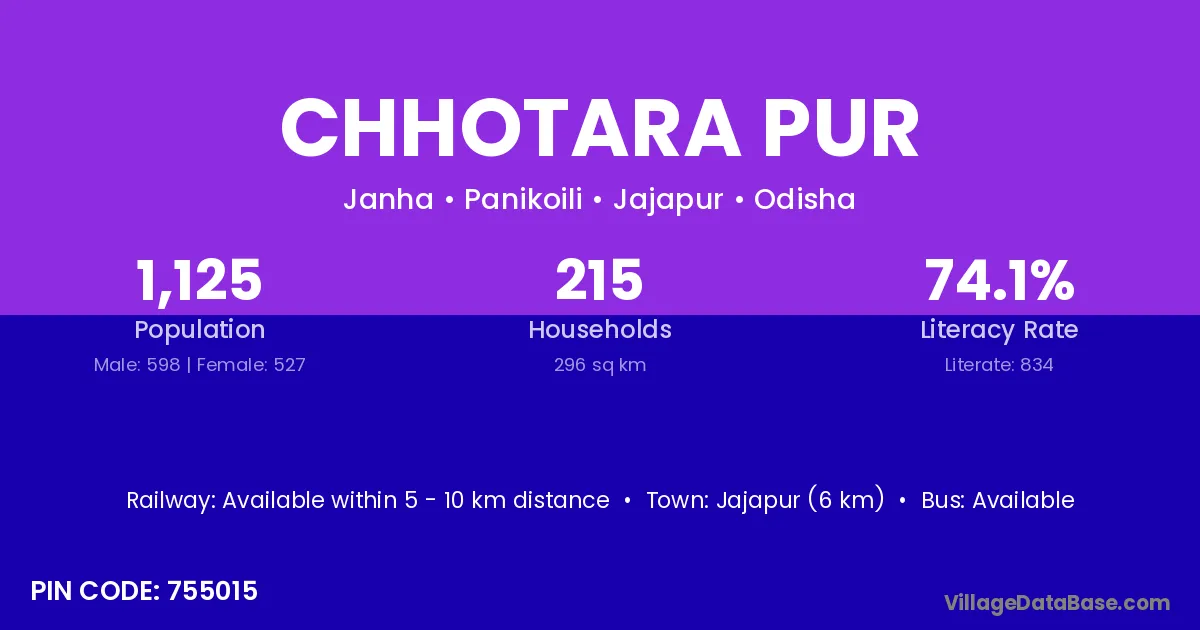 Jajapur (6 km) is the nearest town to Chhotara Pur village for major economic activities and is located approximately 6 km away.