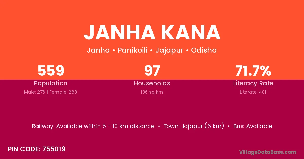 Jajapur (6 km) is the nearest town to Janha Kana village for major economic activities and is located approximately 6 km away.