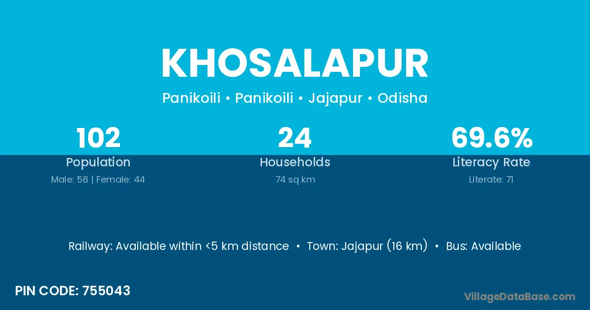 Jajapur (16 km) is the nearest town to Khosalapur village for major economic activities and is located approximately 16 km away.