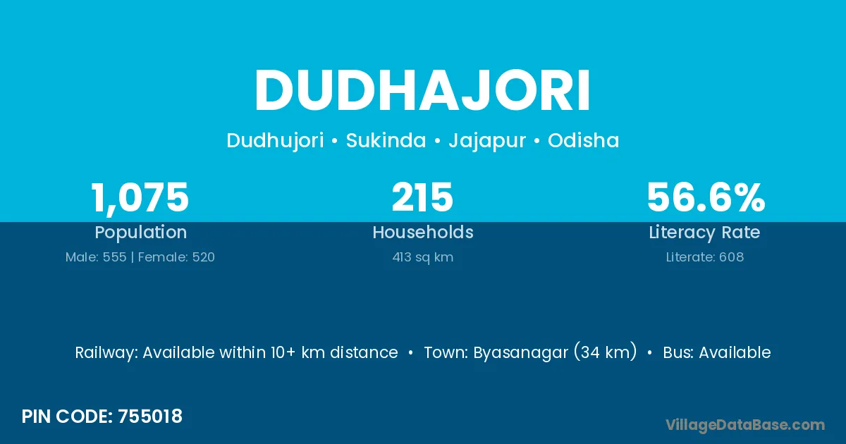 Byasanagar (34 km) is the nearest town to Dudhajori village for major economic activities and is located approximately 34 km away.