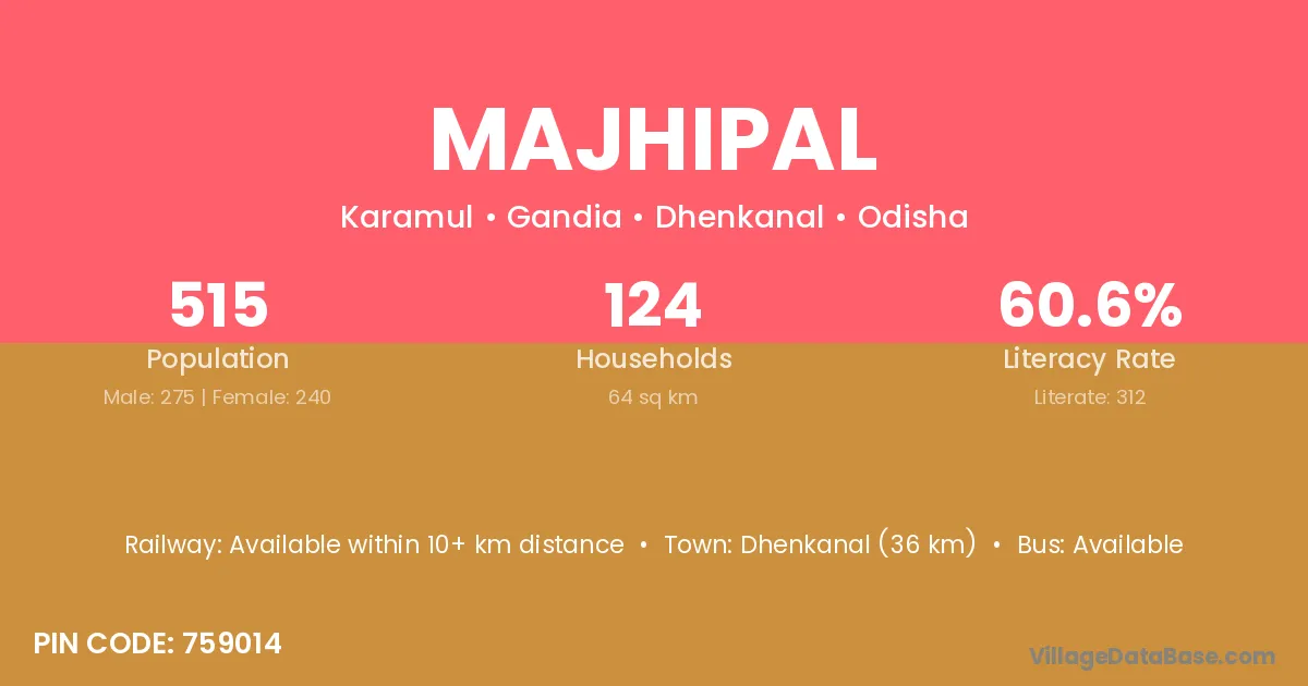 According to Census 2011 information, the village code of Majhipal village is 755019.