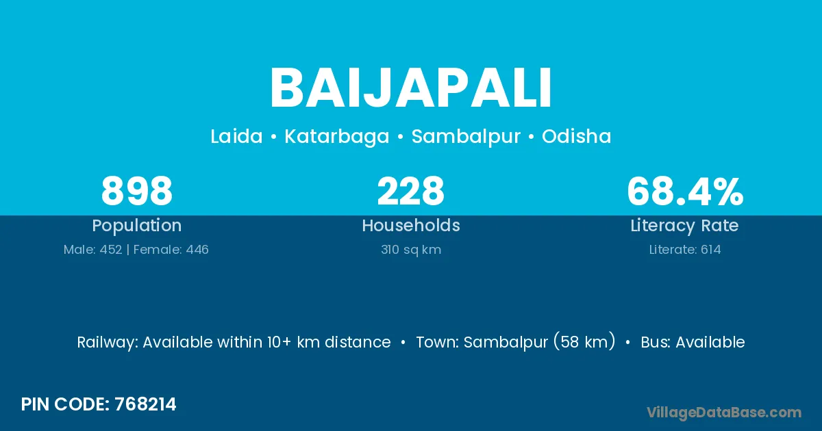 According to Census 2011 information, the village code of Baijapali village is 768220.