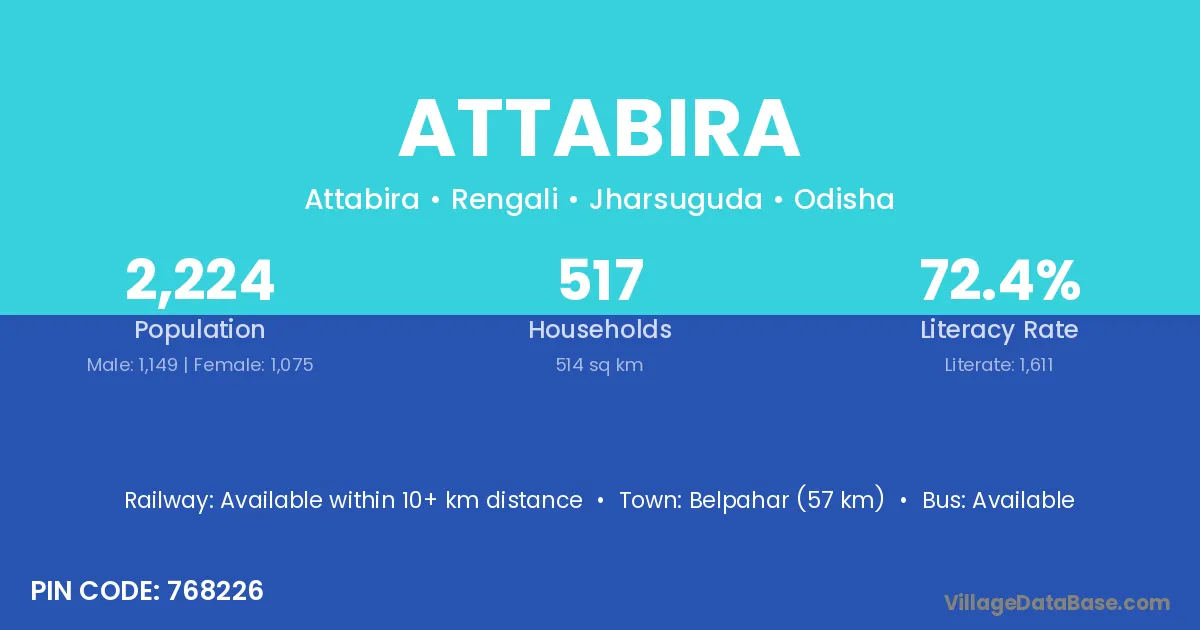 According to Census 2011 information, the village code of Attabira village is 768226.