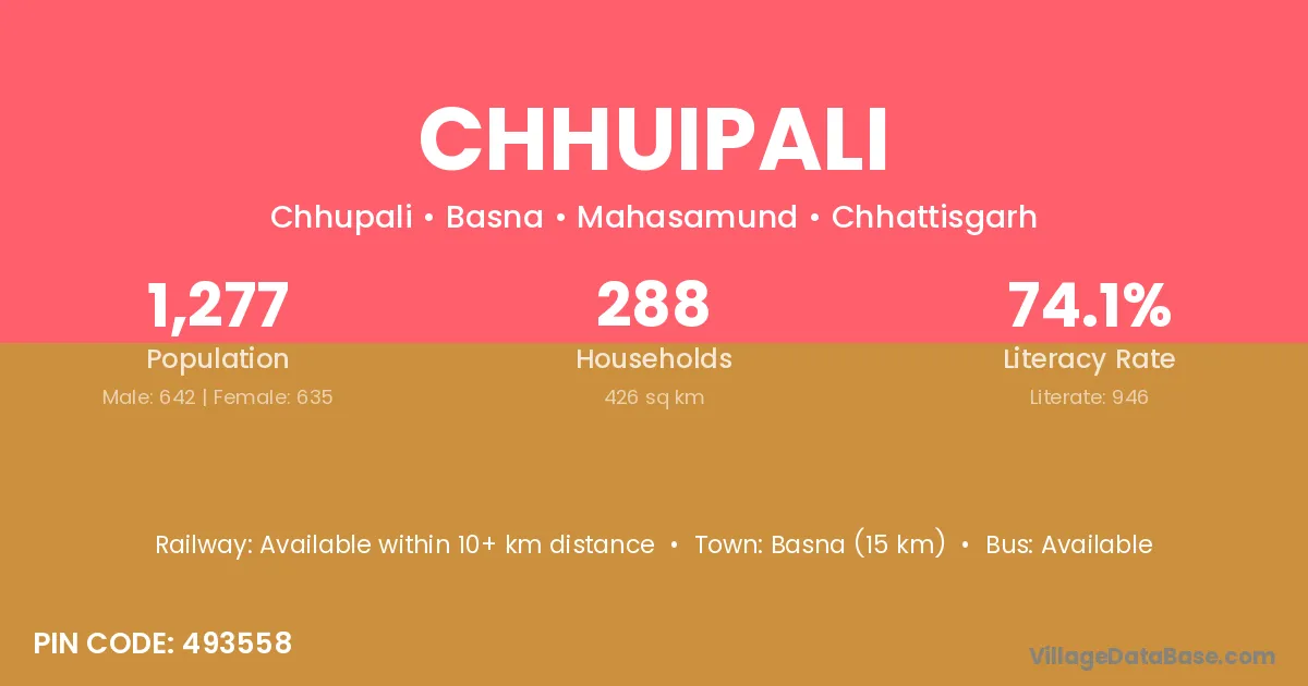 Belpahar (45 km) is the nearest town to Chhuipali village for major economic activities and is located approximately 45 km away.