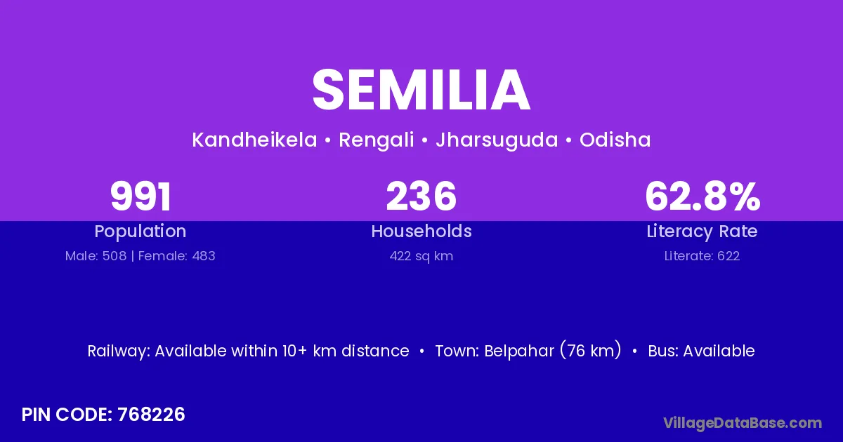 Belpahar (76 km) is the nearest town to Semilia village for major economic activities and is located approximately 76 km away.