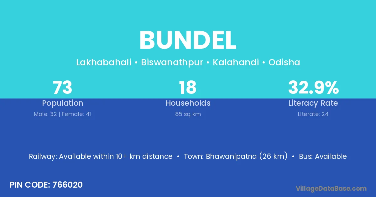 Bhawanipatna (26 km) is the nearest town to Bundel village for major economic activities and is located approximately 26 km away.
