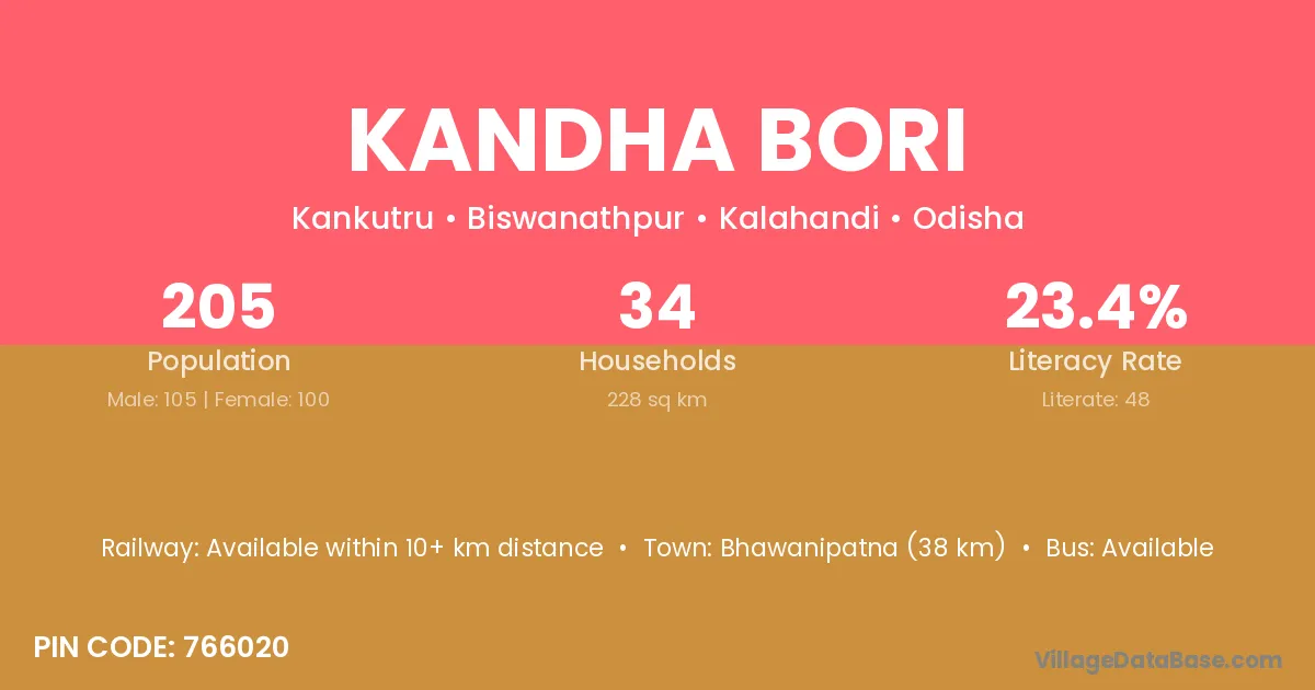 Kandha Bori village has a total population of 205 people, of which 105 are males and 100 are females.