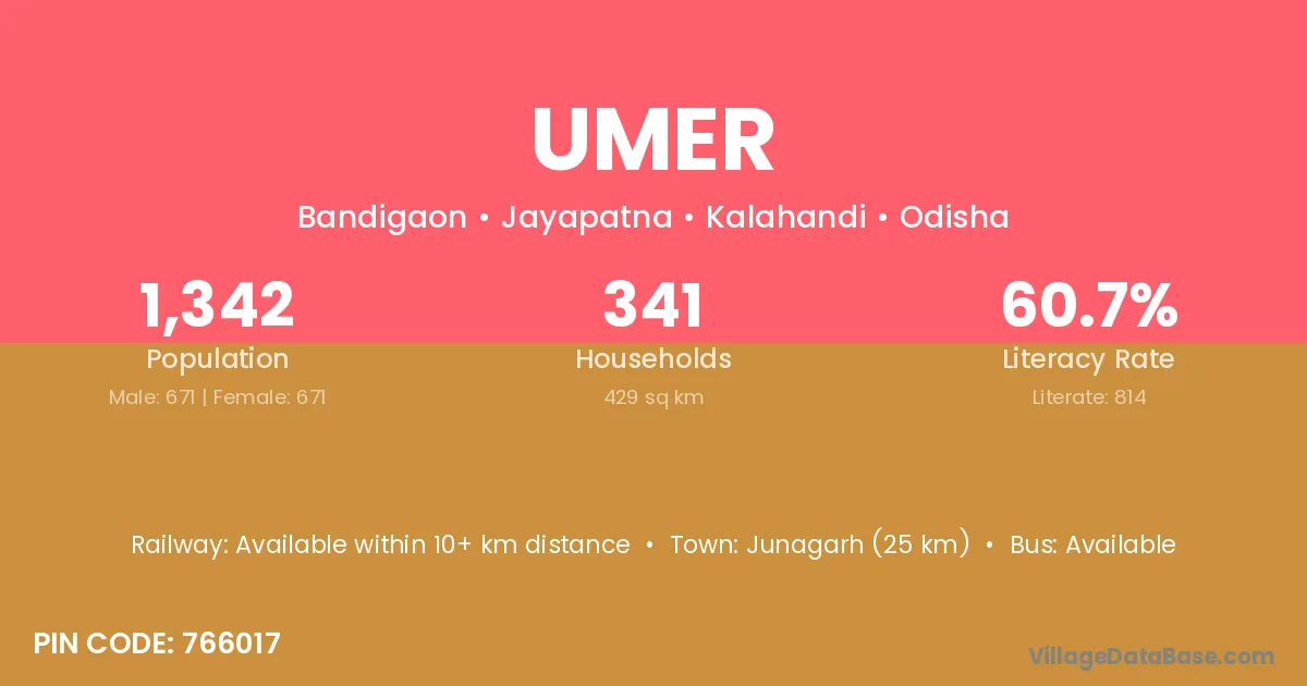 Bhawanipatna (40 km) is the nearest town to Umer village for major economic activities and is located approximately 40 km away.