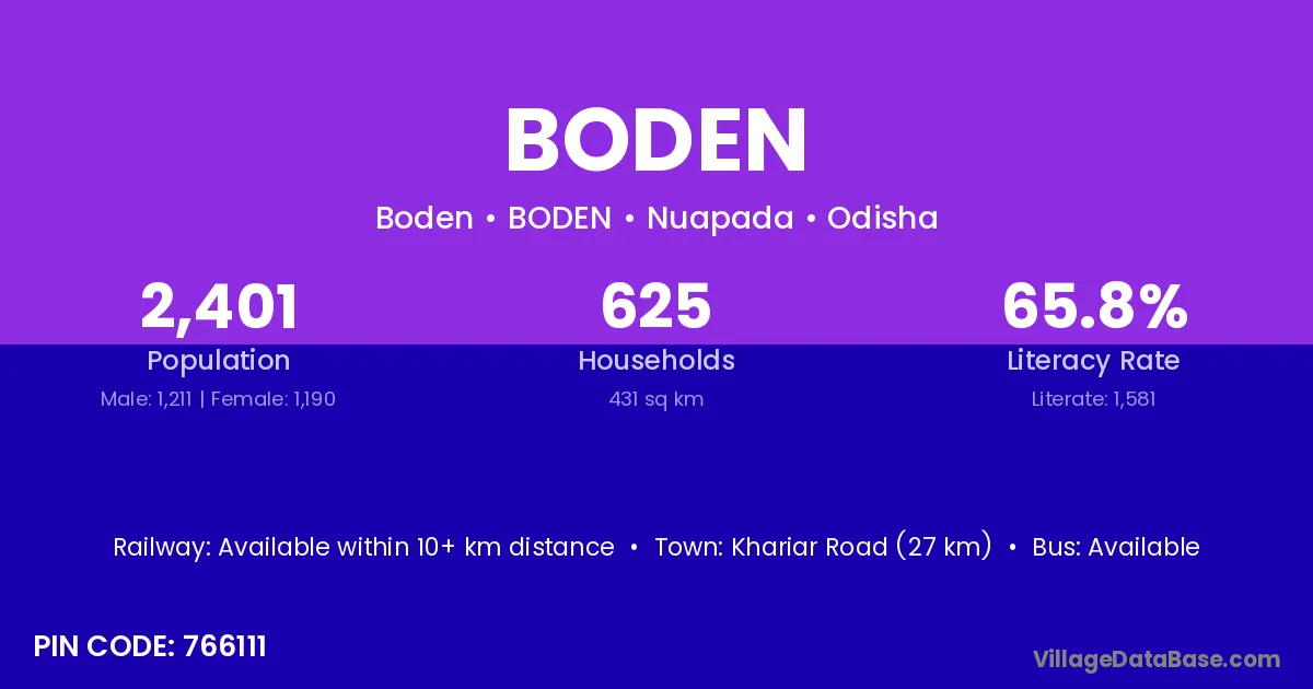 Junagarh (17 km) is the nearest town to Boden village for major economic activities and is located approximately 17 km away.