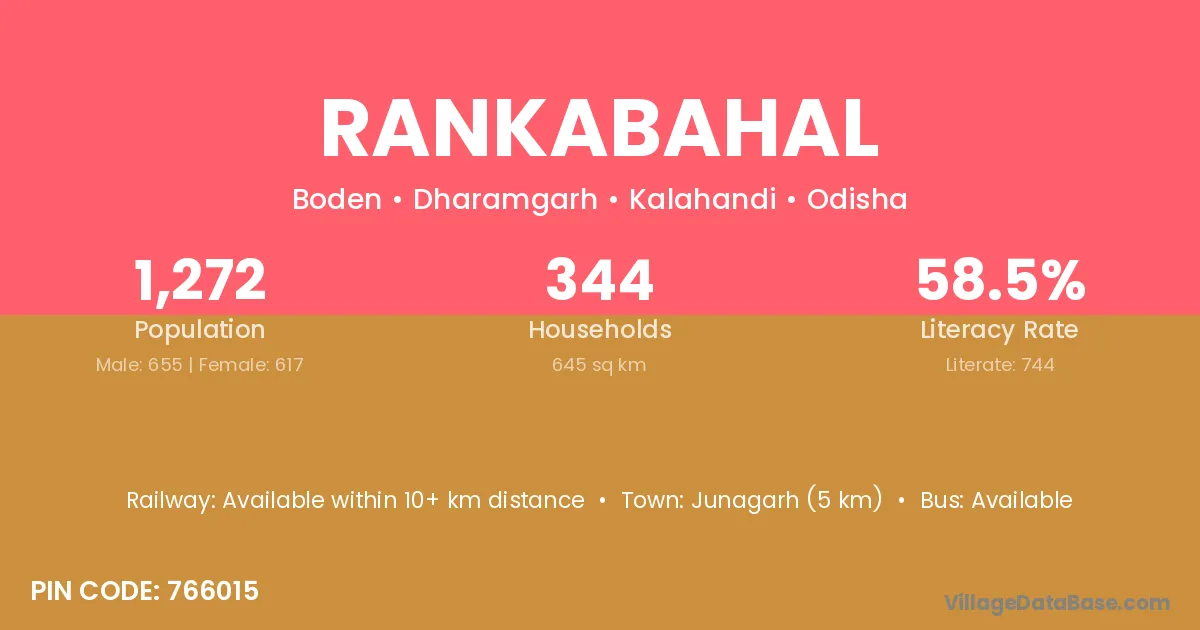 Rankabahal village has a total population of 1,272 people, of which 655 are males and 617 are females.