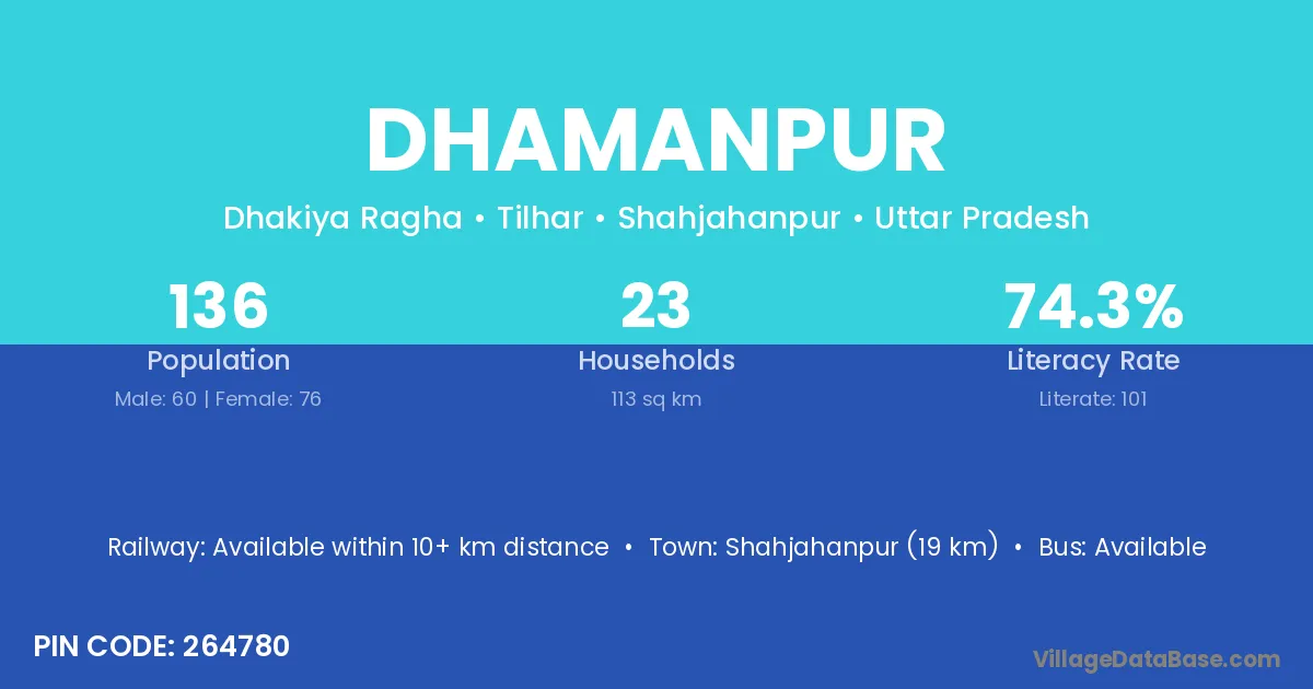 There are approximately 724 households in Dhamanpur village.