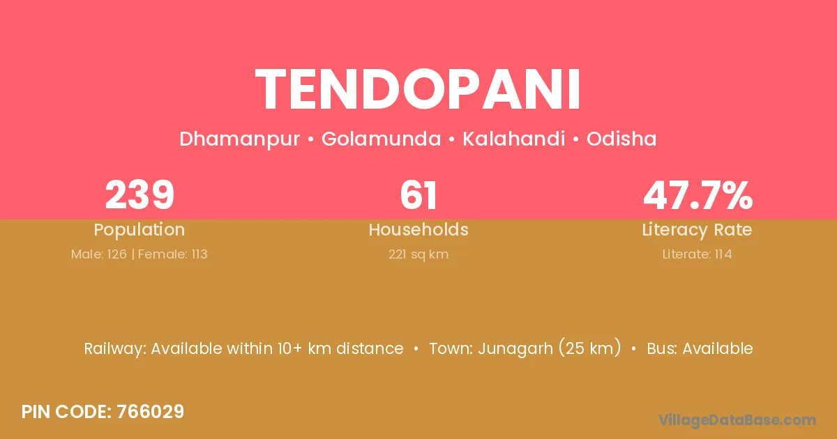 According to Census 2011 information, the village code of Tendopani village is 766029.
