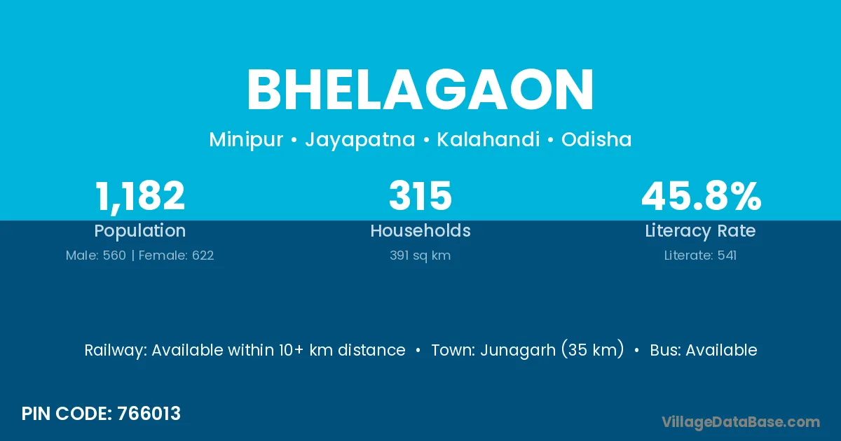 Junagarh (35 km) is the nearest town to Bhelagaon village for major economic activities and is located approximately 35 km away.
