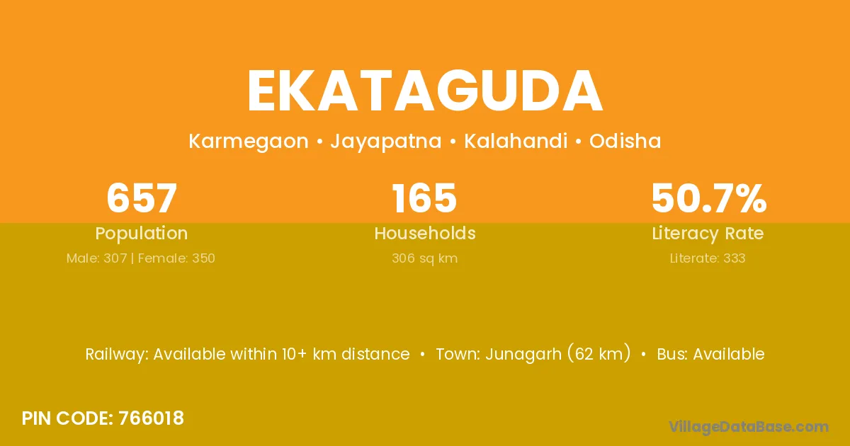 Ekataguda village has a total population of 657 people, of which 307 are males and 350 are females.