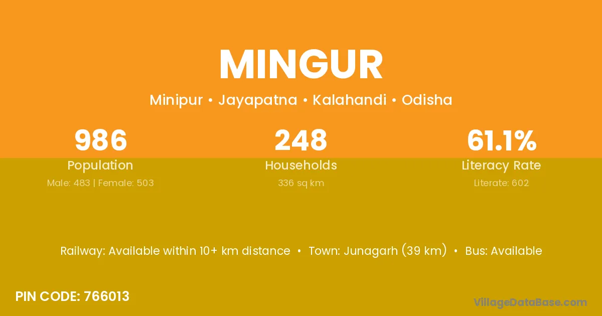 Mingur village has a total population of 986 people, of which 483 are males and 503 are females.