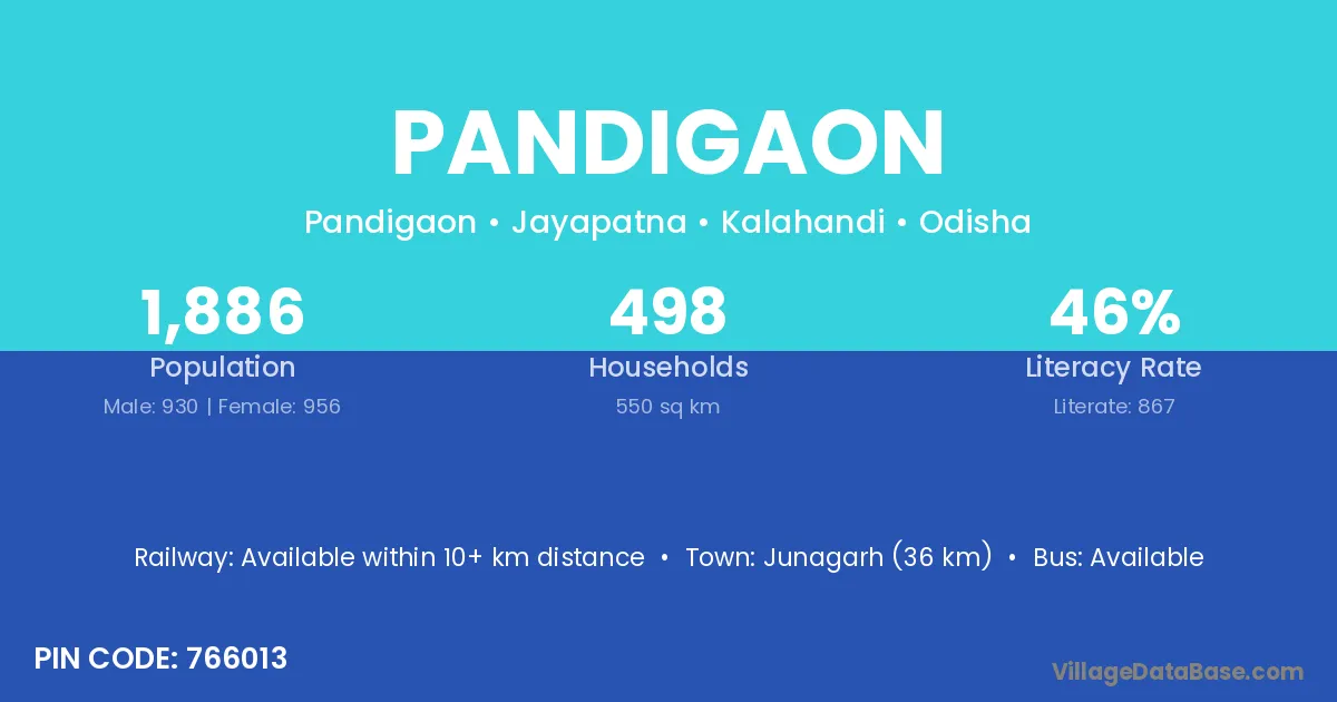 Junagarh (36 km) is the nearest town to Pandigaon village for major economic activities and is located approximately 36 km away.