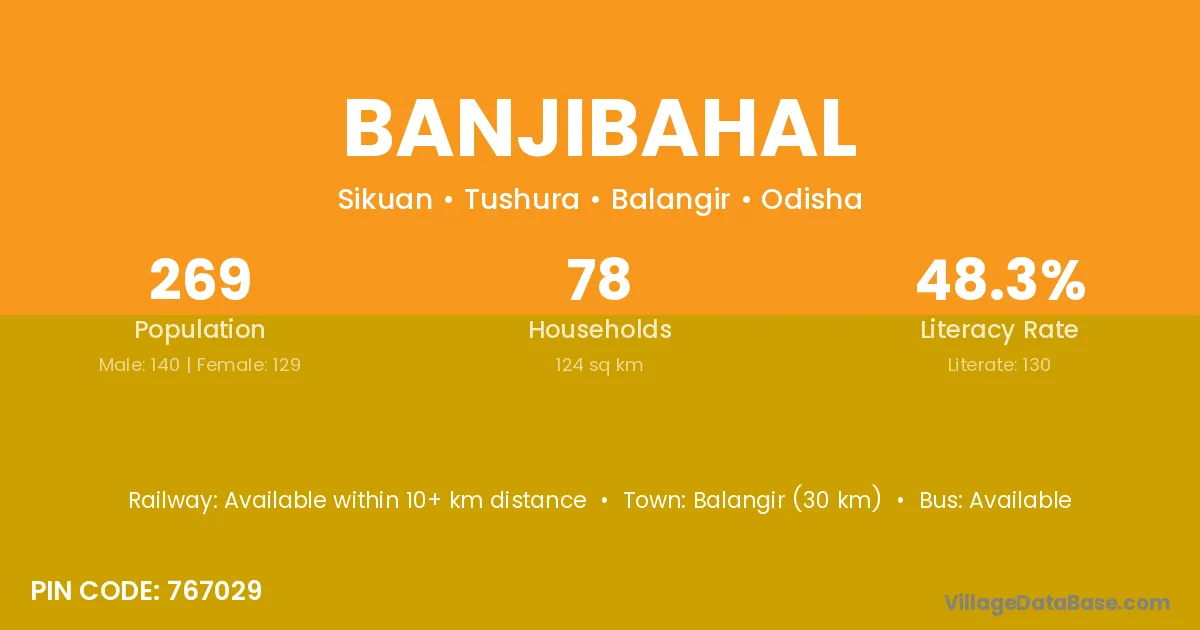Junagarh (21 km) is the nearest town to Banjibahal village for major economic activities and is located approximately 21 km away.
