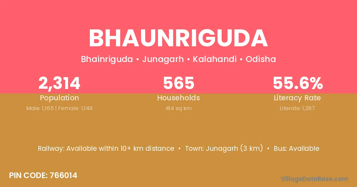 Junagarh (3 km) is the nearest town to Bhaunriguda village for major economic activities and is located approximately 3 km away.