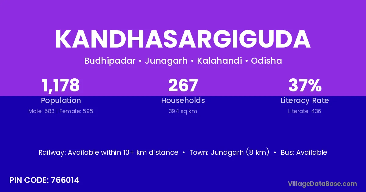 Junagarh (8 km) is the nearest town to Kandhasargiguda village for major economic activities and is located approximately 8 km away.