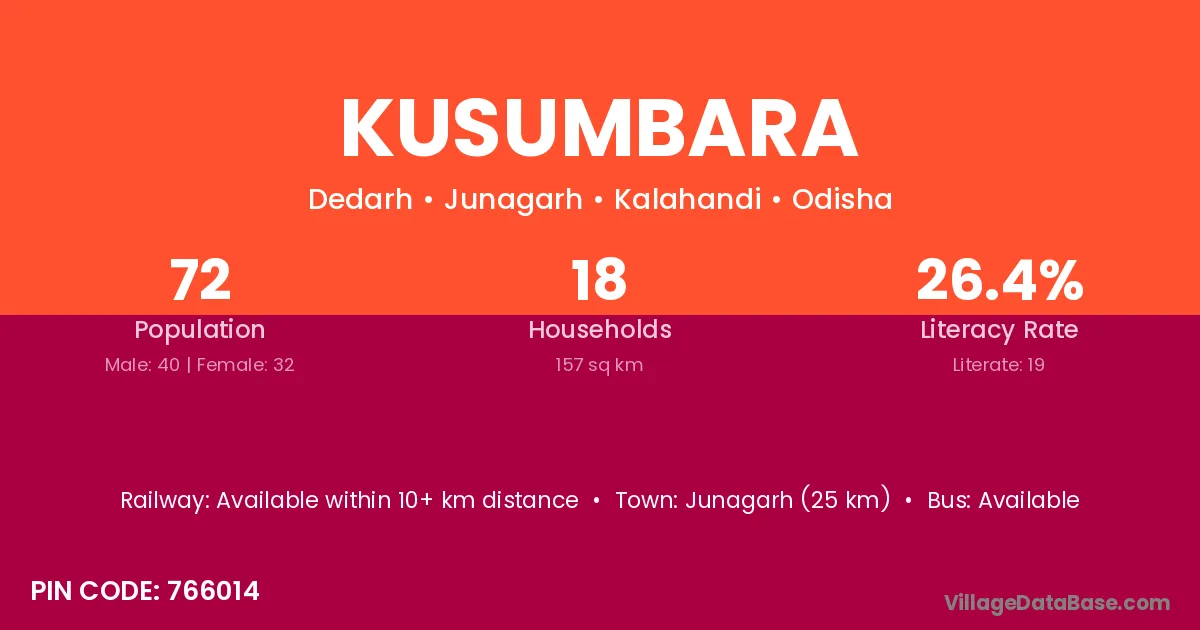 Kusumbara village is located in the Junagarh Tehsil of the Kalahandi district in Odisha .