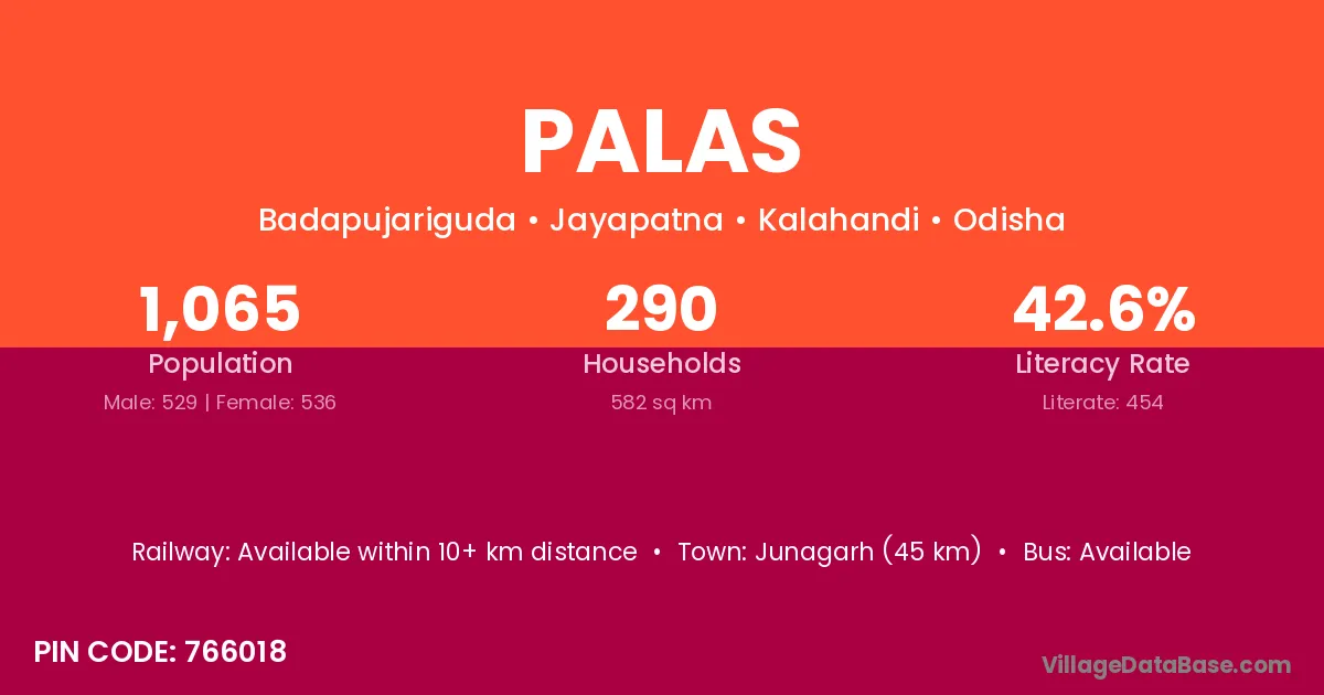 Palas village is located in the Junagarh Tehsil of the Kalahandi district in Odisha .