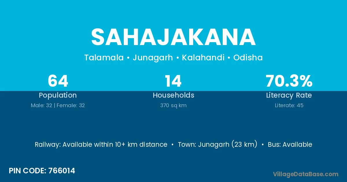 Junagarh (23 km) is the nearest town to Sahajakana village for major economic activities and is located approximately 23 km away.