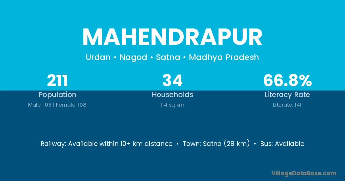 The literacy rate of Mahendrapur village is 48.00%. Male literacy stands at 59.22% and female literacy at 36.08%.