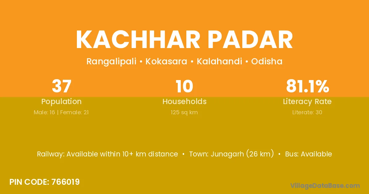 Junagarh (26 km) is the nearest town to Kachhar Padar village for major economic activities and is located approximately 26 km away.