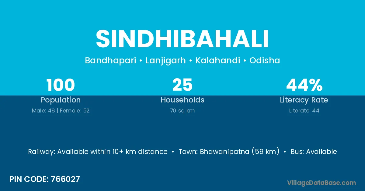 Bhawanipatna (59 km) is the nearest town to Sindhibahali village for major economic activities and is located approximately 59 km away.
