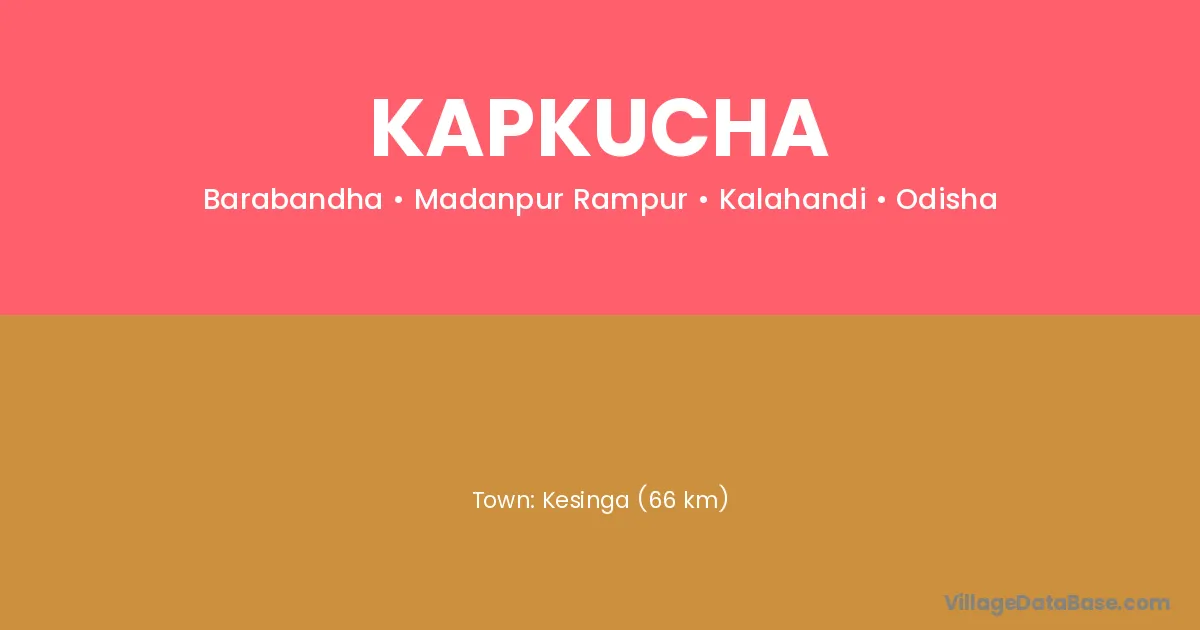 Kesinga (66 km) is the nearest town to Kapkucha village for major economic activities and is located approximately 66 km away.