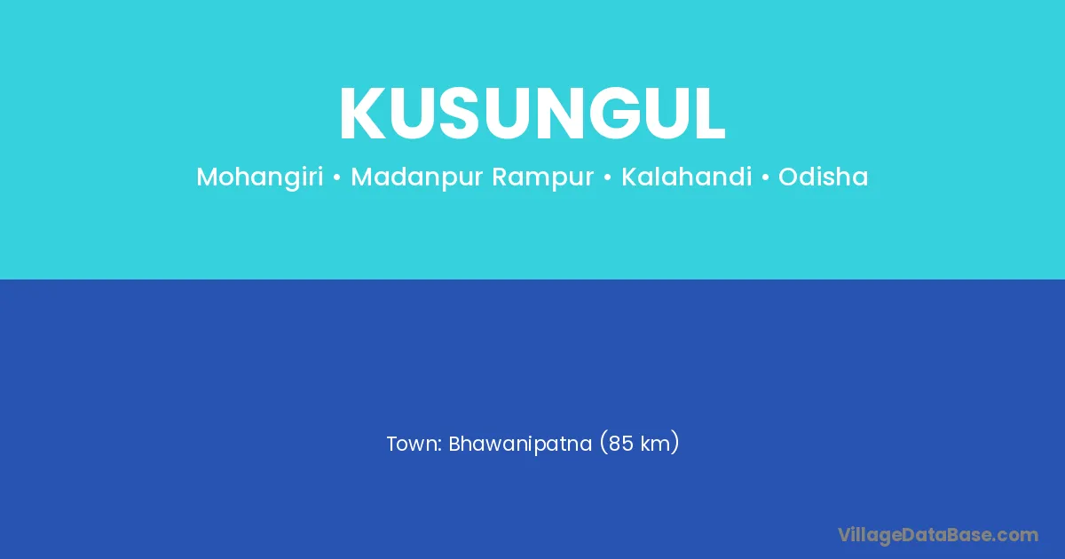 Bhawanipatna (85 km) is the nearest town to Kusungul village for major economic activities and is located approximately 85 km away.