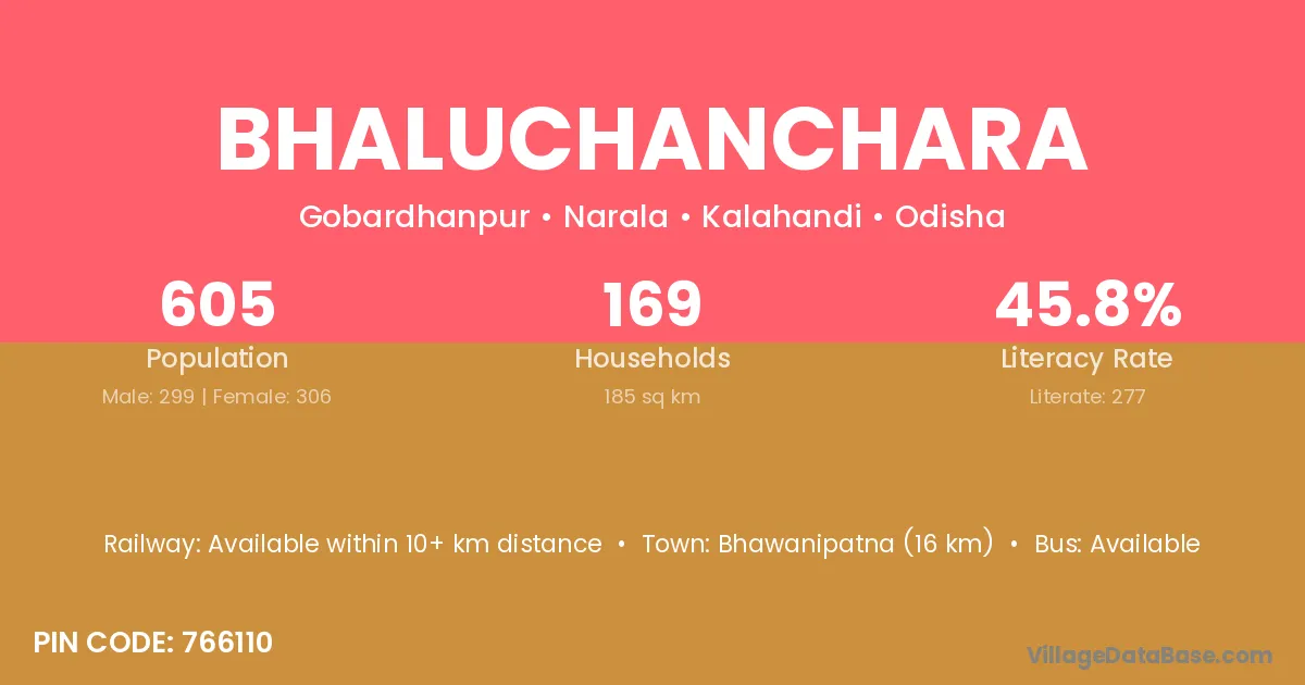 Bhawanipatna (16 km) is the nearest town to Bhaluchanchara village for major economic activities and is located approximately 16 km away.