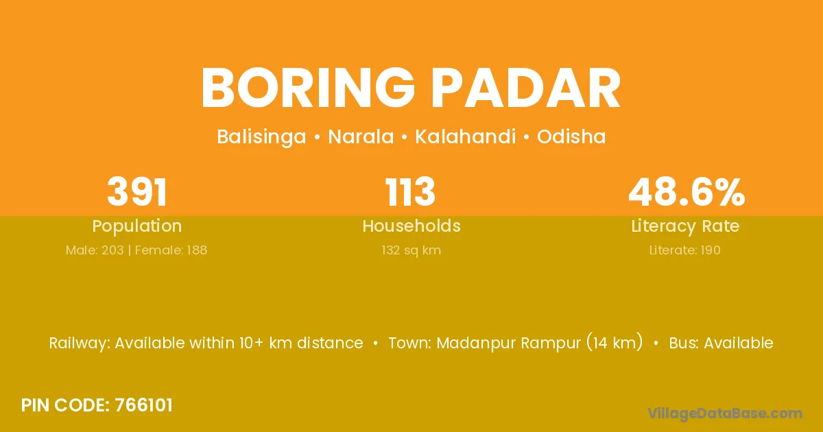 Boring Padar village is located in the Narala Tehsil of the Kalahandi district in Odisha .