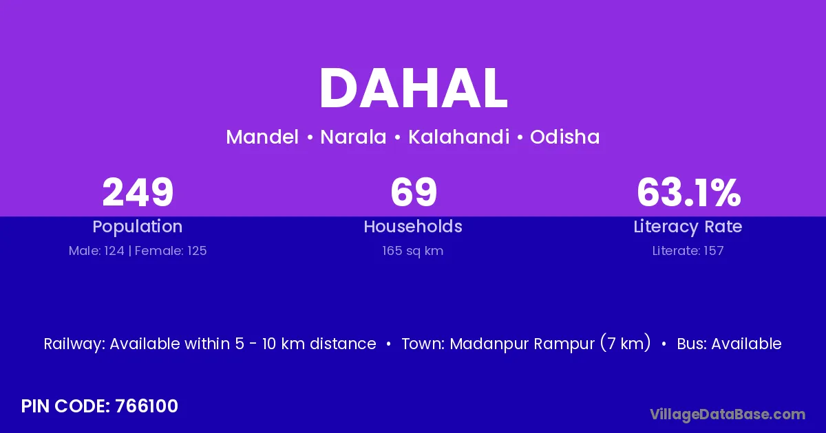 Dahal village is located in the Narala Tehsil of the Kalahandi district in Odisha .