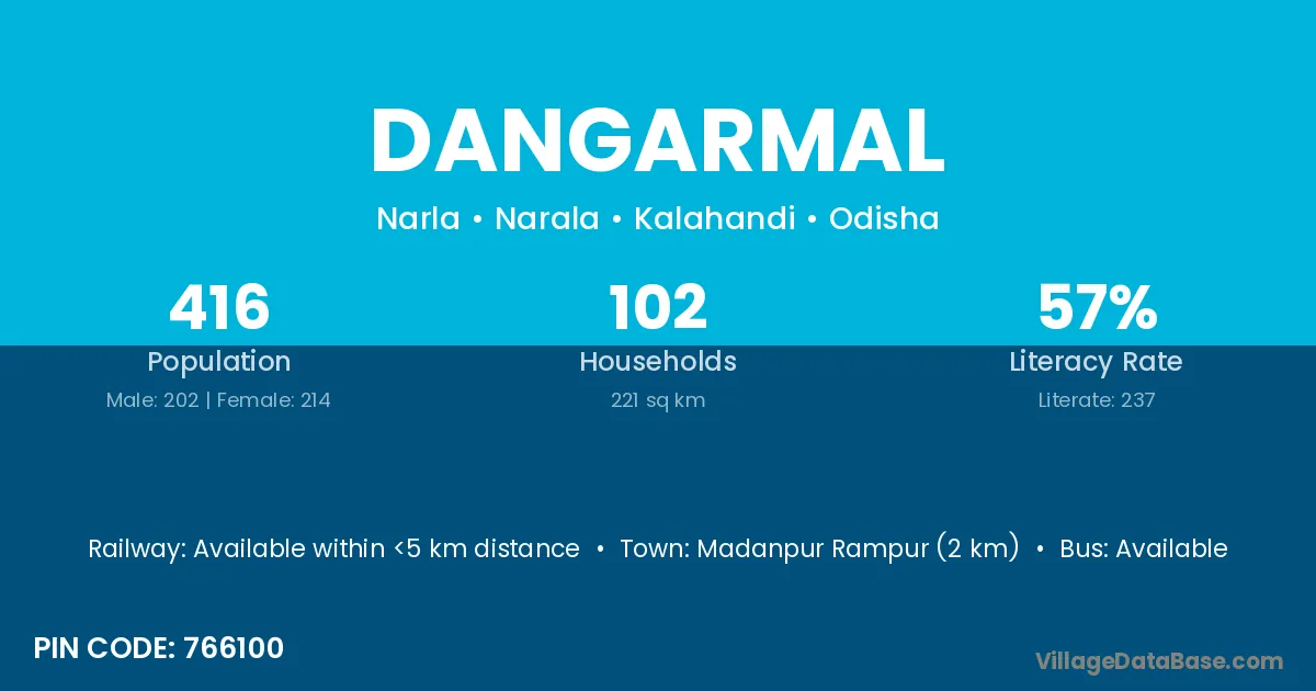Madanpur Rampur (2 km) is the nearest town to Dangarmal village for major economic activities and is located approximately 2 km away.