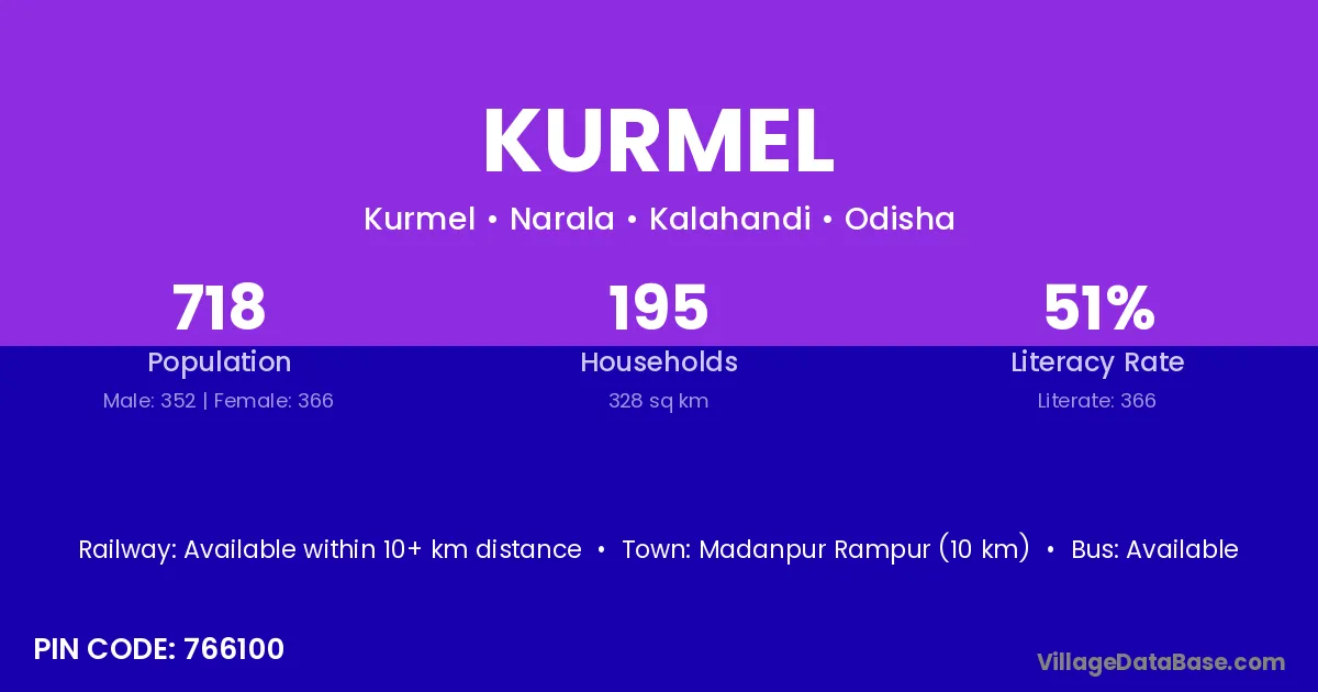 Kurmel village has a total population of 718 people, of which 352 are males and 366 are females.