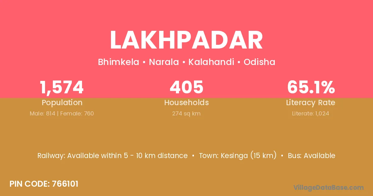 Kesinga (15 km) is the nearest town to Lakhpadar village for major economic activities and is located approximately 15 km away.