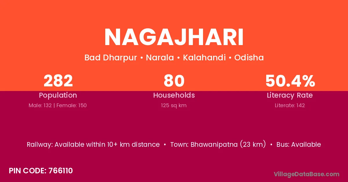 Bhawanipatna (23 km) is the nearest town to Nagajhari village for major economic activities and is located approximately 23 km away.