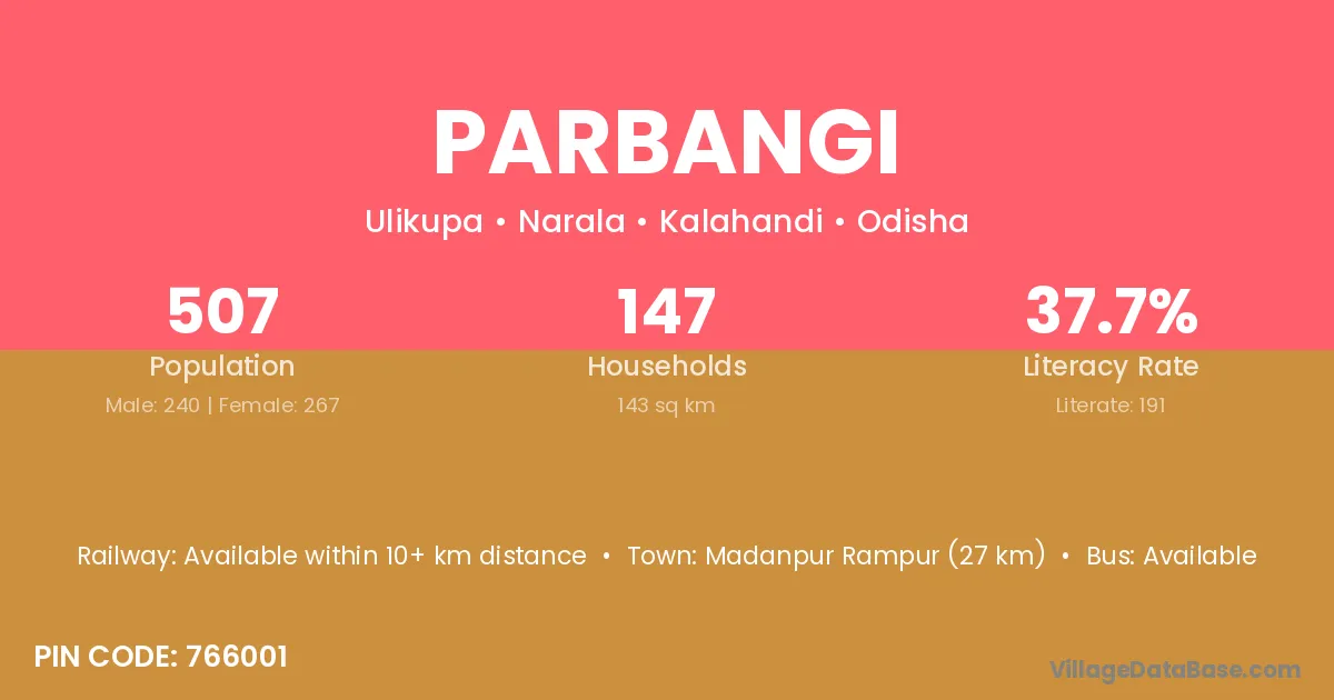 Parbangi village is located in the Narala Tehsil of the Kalahandi district in Odisha .