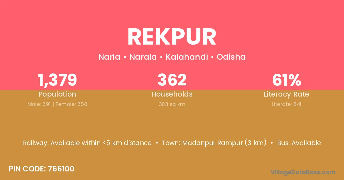 According to Census 2011 information, the village code of Rekpur village is 766100.