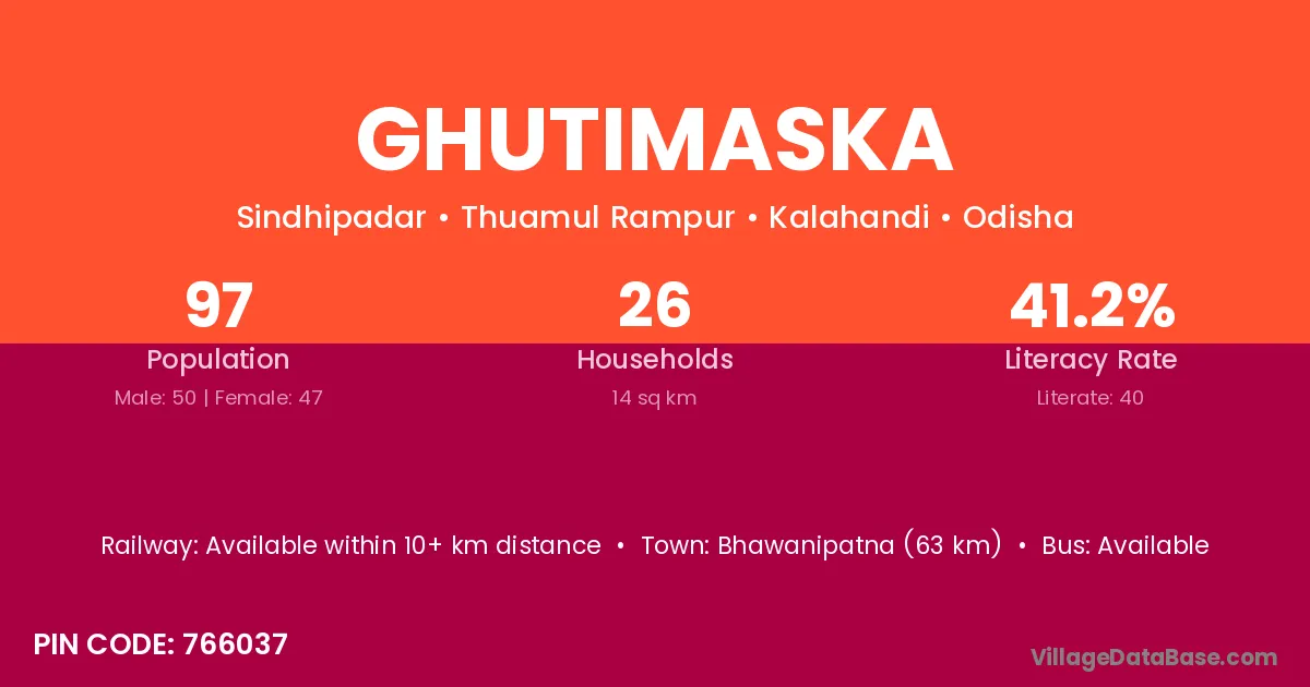 Bhawanipatna (63 km) is the nearest town to Ghutimaska village for major economic activities and is located approximately 63 km away.