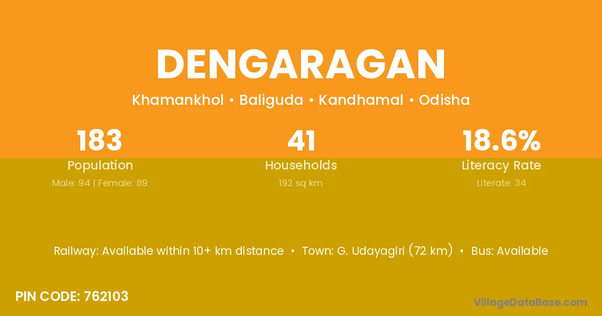 G. Udayagiri (72 km) is the nearest town to Dengaragan village for major economic activities and is located approximately 72 km away.