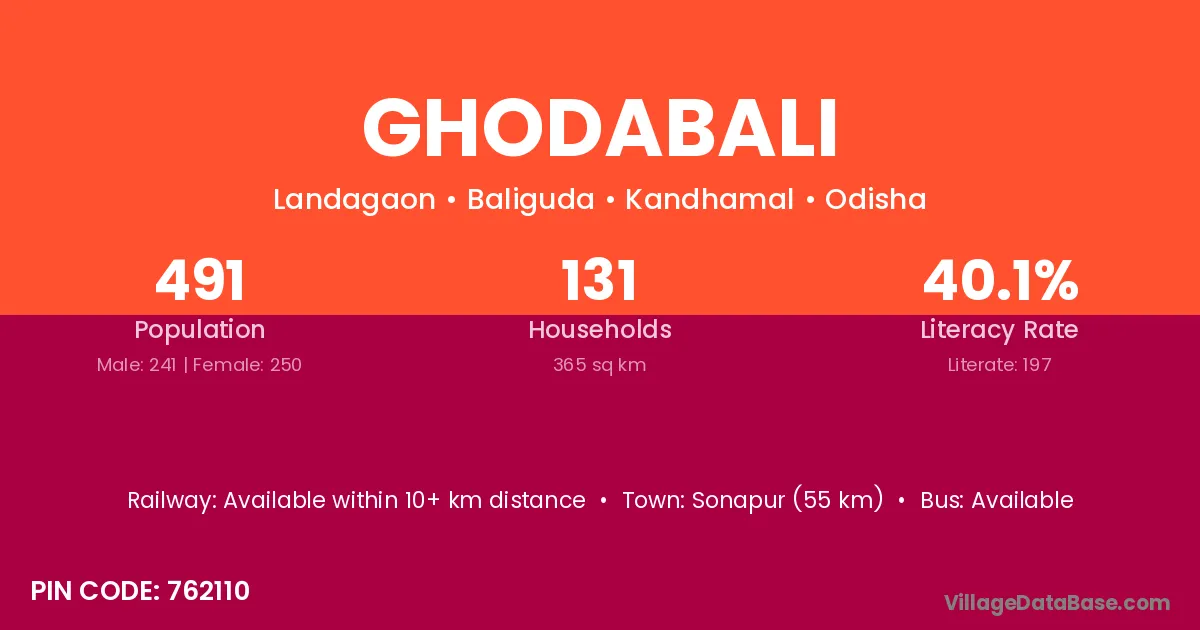 Ghodabali village has a total population of 491 people, of which 241 are males and 250 are females.