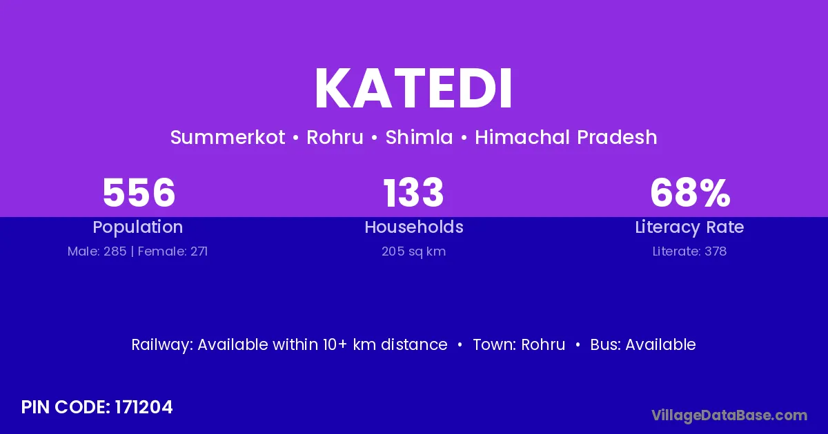 According to Census 2011 information, the village code of Katedi village is 762110.