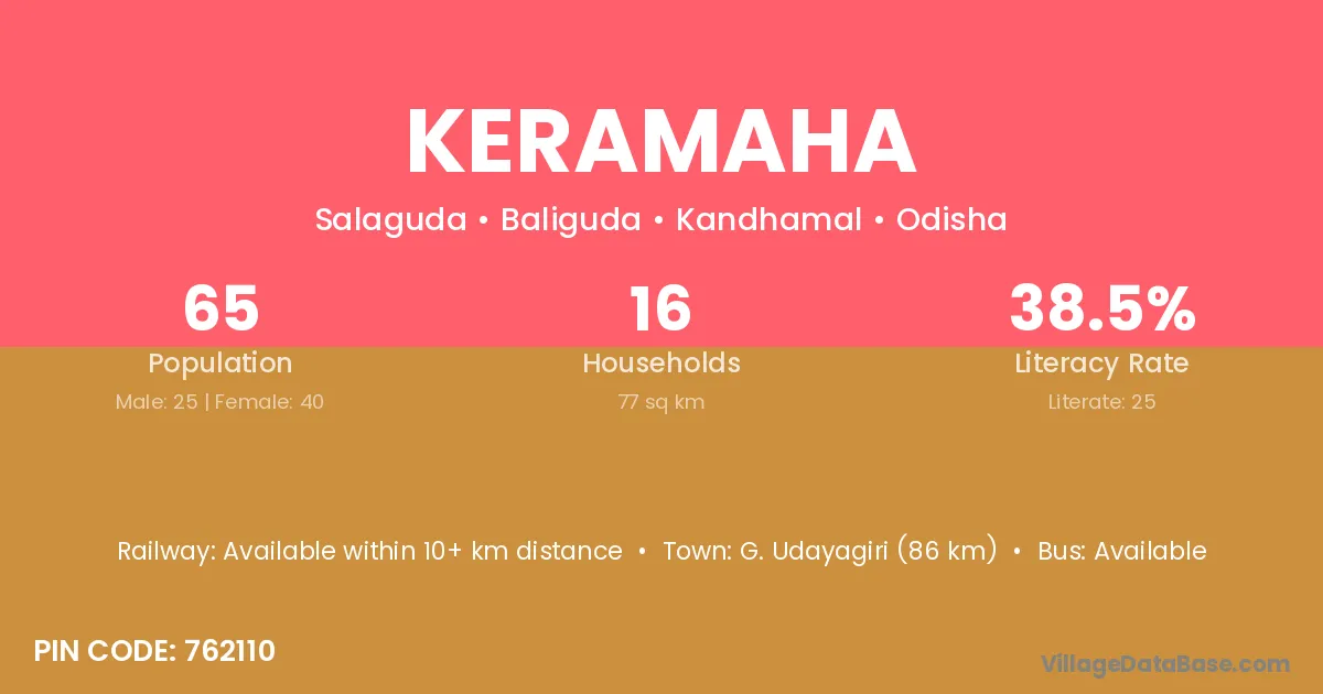 G. Udayagiri (86 km) is the nearest town to Keramaha village for major economic activities and is located approximately 86 km away.