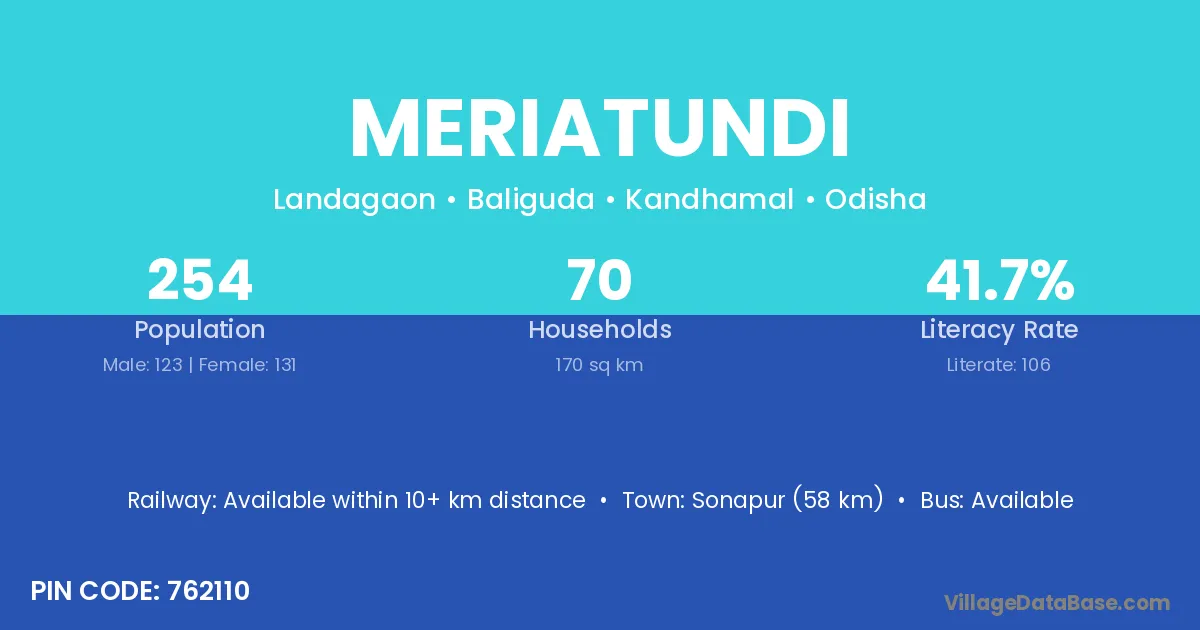 Meriatundi village has a total population of 254 people, of which 123 are males and 131 are females.