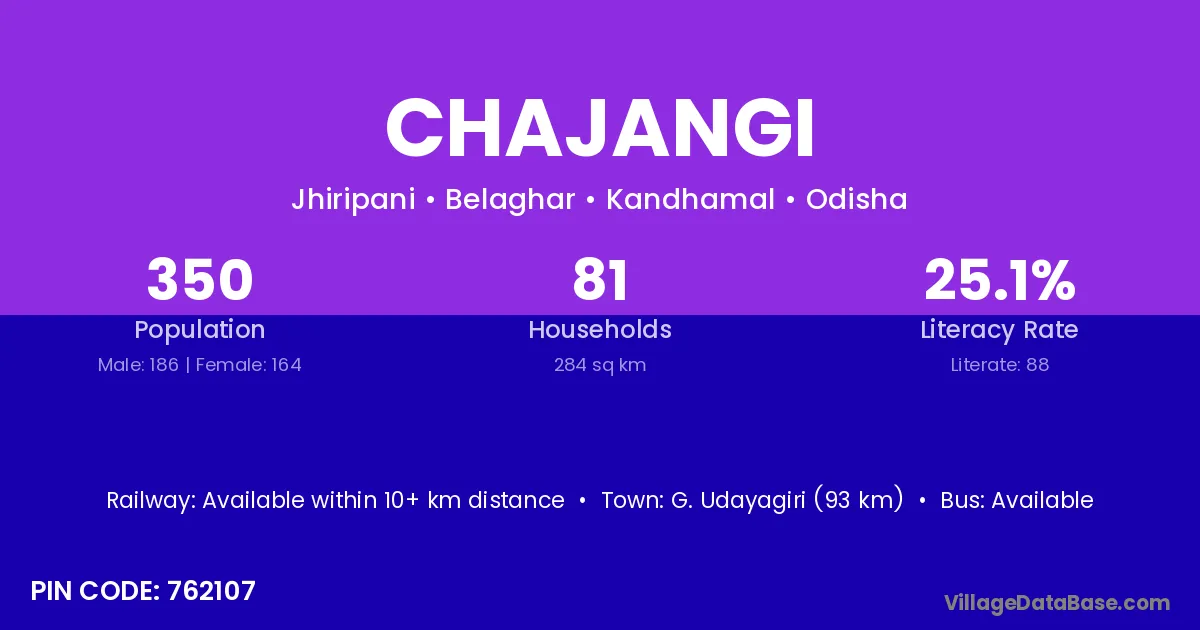G. Udayagiri (93 km) is the nearest town to Chajangi village for major economic activities and is located approximately 93 km away.